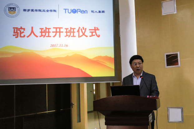 王志凯代表学院向驼人集团的大力支持表示衷心感谢。他说,两家六年多以来的合作过程中,从原来的教职员工互访、新生入学教育、奖学金设立,到如今的实习就业基地建设、高层次人才互聘、科研平台合作共建以及驼人班的组建,双方的合作不断走向了新高度。他提出,同学们要珍惜机会,积极实践,不断加强自身的知识储备和思想修养;老师们要把握机遇,积极互动交流,把行业前沿知识运用到教学中,同时多利用双方科研平台推进产学研协同创新。