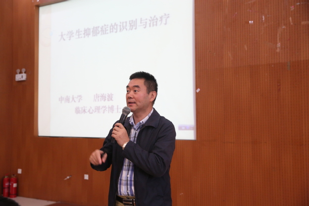 10月11日上午,我院在行政楼三楼学术报告厅开展辅导员心理技能培训讲座暨心理健康教育宣传月启动仪式。我院党委副书记王金文、学务长邱永建、中南大学唐海波教授出席,各书院负责人及全体学工人员参加。下午,唐海波教授面向全院学生做《大学生抑郁症的识别与治疗》讲座,报告严肃生动,通过对典型案例的层层剖析,揭示高校大学生自杀心理及抑郁的广泛性与严重性,并传授大家有效的识别危机心理的方法及干预措施。