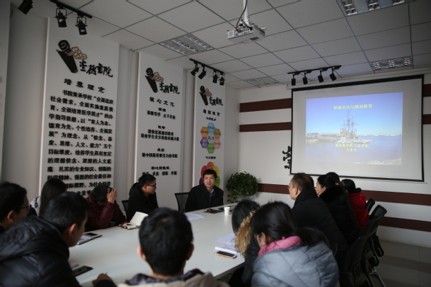 12月21日,我校副院长王彦杰应邀做客崇德大讲堂做“传统文化与通识教育”科研专题讲座。崇德书院全体教职工参加,讲座由崇德书院党总支书记徐超主持。