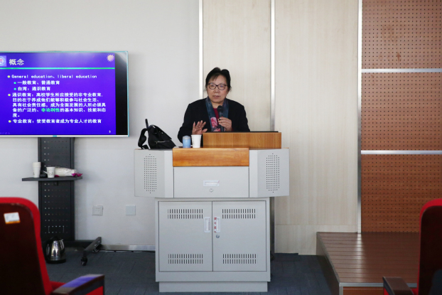 鲁映青以“医学生通识教育研究与实践”为题,围绕通识教育的概念、历史与现状、通识教育对医学生的重要性、复旦大学的通识教育实践三个方面介绍了通识教育改革的相关情况和经验。通过对通识教育理念和作用的深度挖掘、国内外通识教育情况的比较分析,以及通识教育课程类型和设置情况、授课形式、授课内容等方面的详细介绍,分享了复旦大学通识教育发展过程中遇到的困难与挫折以及如何克服种种困难,对我校通识教育改革有很大指导意义。参会教师就通识教育方面的一些问题与鲁映青进行沟通交流,鲁映青结合复旦大学在改革中遇到类似问题采用的解决方案,从师资安排、课程开发设计、授课方式等角度进行解答并提出建议。