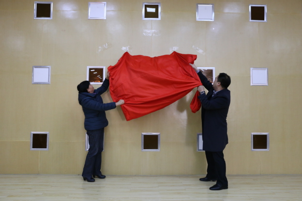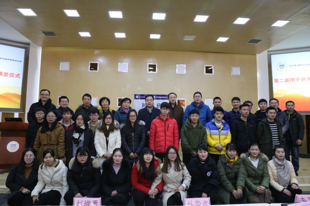 在两百余名师生的见证下,杜华贞、赵增勇为“翔宇班”揭牌。