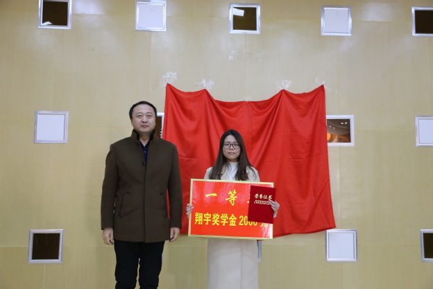 接着,与会领导为获奖的10名学员颁发了“翔宇奖学金”和荣誉证书。一等奖获得者朱梦梦代表获奖学员发言,她向关心、支持翔宇班的学校和企业表示由衷的感谢,同时勉励第二届翔宇班的学员们要刻苦学习,以期未来获得更大成就。