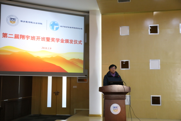 杜华贞代表学校向翔宇的大力支持表示衷心感谢。她说,近三年来,我校与翔宇医疗校企两家在实习就业基地建设、协同创新中心共建、高层次人才互聘、奖学金设立、组建翔宇班等方面的合作不断深化,双方的合作不仅获得了校方、企方双方的认可,而且作为河南省校区合作的示范项目获得了政府的大力支持。她指出,在未来校企双方合作要进一步拓宽领域,加大力度,共同促进学校和企业疗的发展,为地方经济社会发展服务。并要求同学们珍惜机会,积极实践,不断提高自己的技能水平。