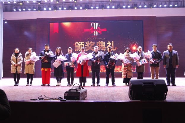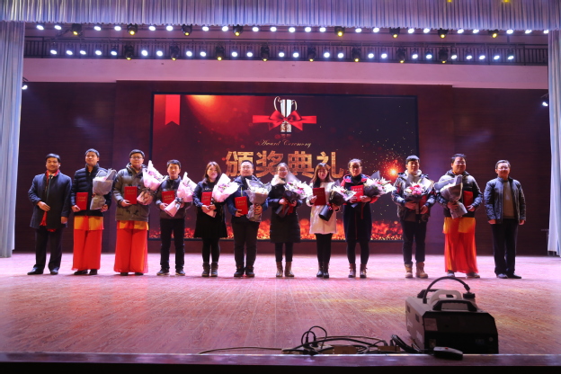 一段开场视频带领大家回顾了2017年学院的大事、荣誉、教职工活动,一幅幅照片令人振奋。喜气洋洋的开场舞《拜新年》拉开了联欢会的序幕。首先颁发了文明家庭、教职工五年和十年年资奖,校领导为职工代表颁发证书和鲜花。