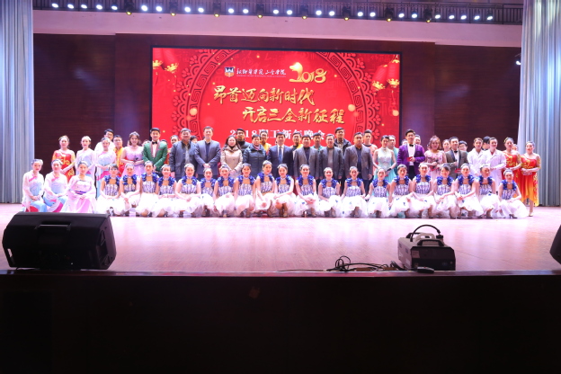 1月26日下午,我校2018年“昂首迈入新时代,开启三全新征程”教职工春节联欢会在闻德礼堂隆重举行。全体校领导与广大教职工欢聚一堂,喜迎新春。