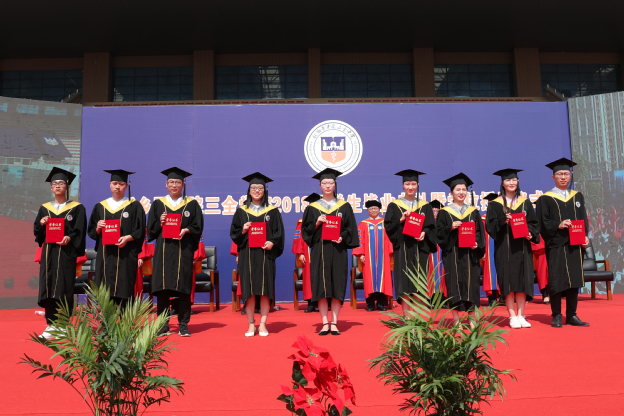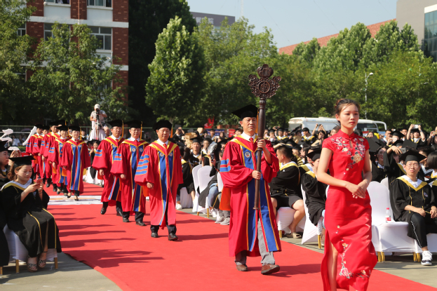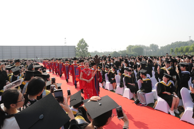 在神圣庄严的气氛中,杨捷和王志凯分别在两个校区为学士学位获得者代表扶正流苏、授予学位证书。