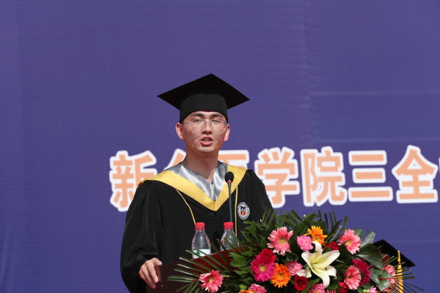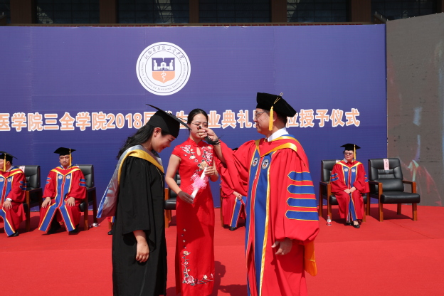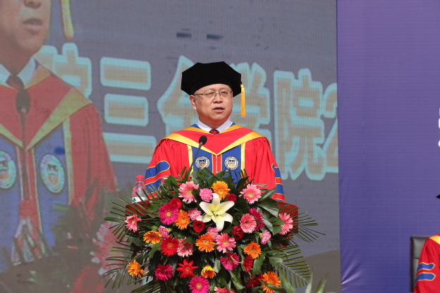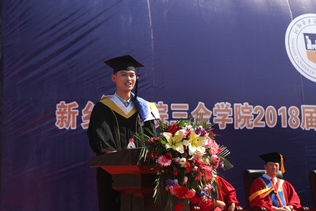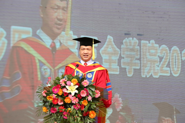 毕业生代表梁鹏波、刘哲彰发言。他们分别代表两校区的毕业生向辛勤培育学生成才的各位领导、老师表达了最衷心的感谢,向多年来辛勤操劳的父母表达了最崇高的敬意,向几年来朝夕相处的兄弟姐妹表达了最真诚的祝福。他们说:“吾辈大好青年,当不忘在三全之所学,让数年的积累绽放在祖国最需要的地方,在伟大复兴路上书写精彩人生”!他们见证了母校的稳健成长,共同祝福母校永立潮头,早日建成“地方性、高水平、有特色、应用型的健康服务大学”!