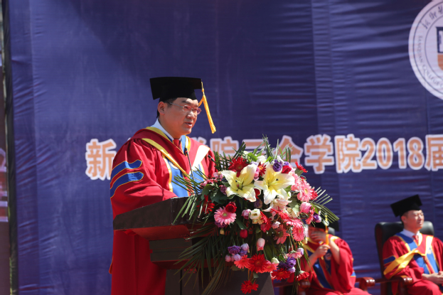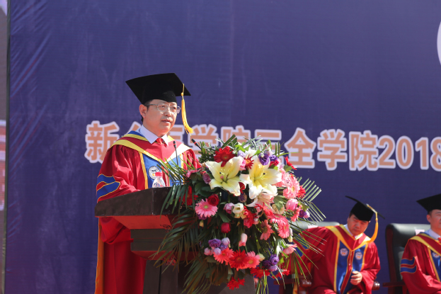 王志凯书记在新乡校区作毕业寄语。他作为“同学们最熟悉的陌生人”,首先向大家表达了感谢与抱歉,接着送上了三句肺腑之言:一、“我希望,你们能读万卷书,行万里路”——身处光速发展的变革时代,社会万象正呈现指数式的变换,他希望大家树立终身学习的观念,不断积累知识、更新知识,敢于突破职业生涯的舒适区和人生境遇的天花板,将自己的所学、所知,大胆地运用到更广阔的天地中去。二、“我希望,你们能锲而不舍,持之以恒”——他说,历史一定会把等待机会的人、摇摆不定的人、畏首畏尾的人无情拍倒在沙滩上,但却会让创造机会的人、自信从容的人、勇敢搏击的人永远光芒万丈。这个世界除了一直在倡导“人人都献出一点爱”,更在倡导“人人都能对自己的人生负责”。他希望大家保持宁静的定力和稳定的耐力,坚定不移地朝着心中的理想扬帆远航。三、“我希望,你们能始终保持良好的修养”——他说,专业知识有保质期,学会做人才能受益一生;自我约束基础上的自由,顾念别人感受后的善良,自知、自制前提下的自觉,才是根植我们内心、注定会开花结果的良好道德修养。最后,他说:“希望大家保持‘该生优秀,永远免检’的卓越自信,做一个一天比一天过得更快乐的人。我们在‘全’世界,等你们‘王者’归来!”