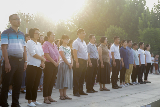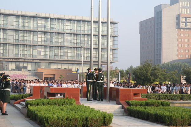8月27日清晨,1500余名师生迎着晨曦,在平原校区闻德广场隆重举行2017-2018学年第二学期首次升旗仪式。我校党委副书记王金文、学务长邱永建出席,学务部及各书院负责人参加。
