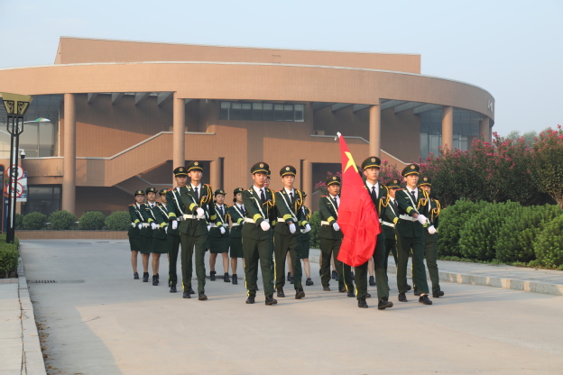 6点55分,升旗仪式正式开始。在全体师生的注目礼下,英姿飒爽的国旗护卫队队员护送鲜艳的五星红旗向升旗台踏步走来。7点整,伴随着庄严的《义勇军进行曲》,五星红旗冉冉升起,迎风飘扬,全场师生行注目礼,怀揣成为“有理想,有本领,有担当”的优秀青年的青春梦想,不忘初心,牢记使命,以优异的成绩向祖国献礼。