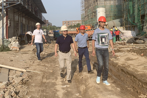 7月22日下午,烈日炎炎,我校党委书记杨捷视察平原校区二期学生公寓建设施工情况,院长办公室、基建部、校园文化建设办公室部门负责人的陪同。