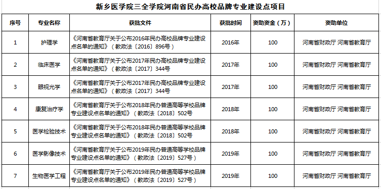 近日,河南省教育厅下发《关于公布2019年民办普通高等学校品牌专业建设点名单的通知》(教政法〔2019〕527号)文件,我校生物医学工程、医学影像技术两个专业入选“2019年河南省民办普通高等学校品牌专业建设点”,并获得专项建设资金200万元,这是我校专业建设在突出特色、打造品牌方面取得的又一重要成果。
