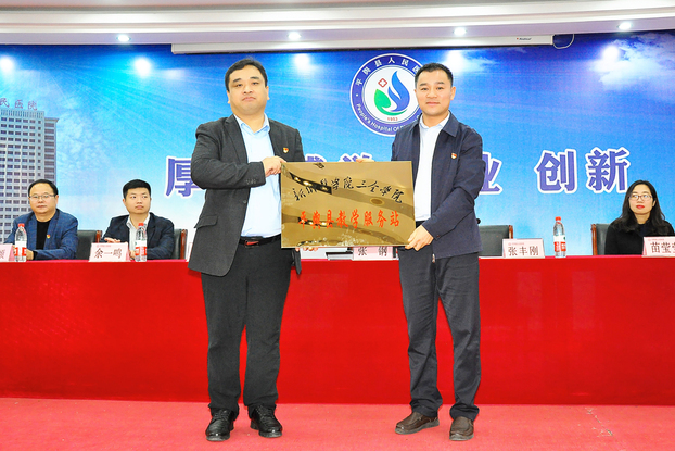 10月19日,我校在平舆县人民医院报告厅隆重举行新乡医学院三全学院平舆县教学服务站授牌仪式,我院党委副书记张钢,平舆县人民医院党委副书记、副院长张丰刚,副院长徐银领出席,我校继续教育学院、基础医学院等部门负责人参加。授牌仪式由平舆县人民医院工会主席于冬梅主持。