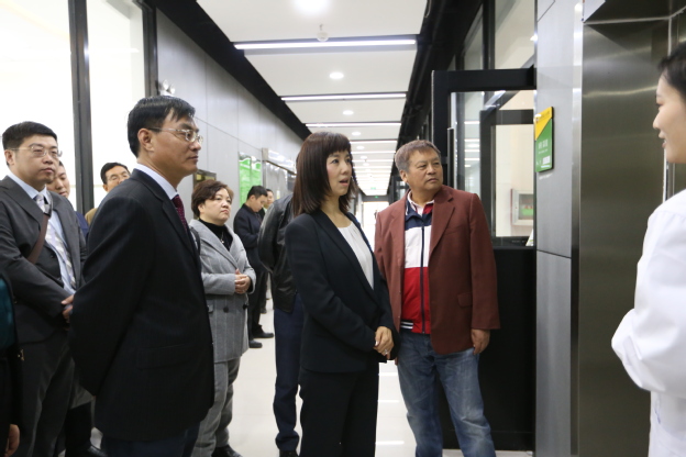 在胡仕坤等人的陪同下,叶青一行先后参观了我校图书馆、挪度(国际)护理实训中心、康复学院、医学影像实训中心、口腔医学技术实训中心和干细胞实验中心,叶青一行对我校以学生为本的办学理念、特色鲜明的“双院制”育人模式、一流的教学设施以及精细化的管理予以称赞。