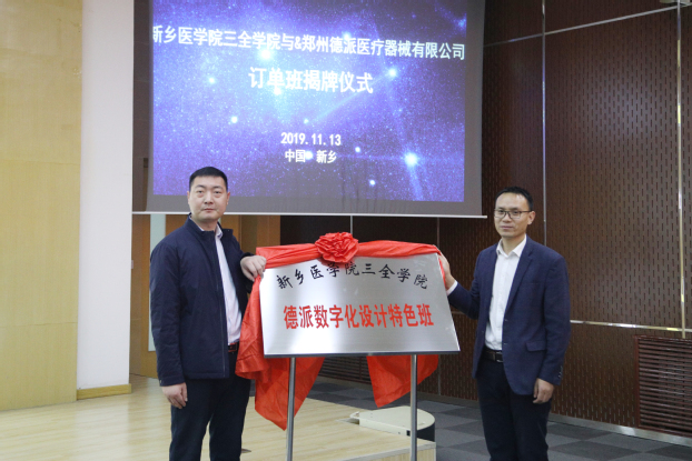 张紫阳表示,郑州德派医疗器械有限公司是我校的重点合作单位,德派数字化设计订单班的开设,是口腔义齿制作加工行业转型升级和健康发展的需要,也是落实立德树人,培养应用型人才和服务区域经济发展的需要。订单班开设标志着双方的合作有了实质性进展,今后校企双方将本着“资源共享、平台共建、成果共享、互利共赢的原则,就积极探索协同育人新模式,完善应用型课程体系,强化“双师型”师资队伍,共建口腔数字化设计中心等方面深入合作,促进教育链、人才链与产业链、创新链有机对接,实现全方位全过程育人,提高人才培养质量。