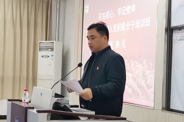 为提高入党积极分子的政治理论水平,确保新发展党员的质量,11月2日上午,我校2019年下半年“不忘初心、牢记使命”入党积极分子培训班开班典礼在谨学楼B201举行,我校党委副书记张钢出席。学校师生入党积极分子220余人参加。