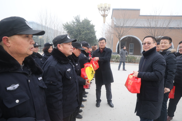 在安全保卫中心、学生公寓等处,校领导与坚守岗位的职工亲切握手交谈,对假期还坚守在岗位上的工作人员表示感谢,并为大家送来了节日慰问品,祝愿他们及家人在新的一年里身体健康,工作顺利,阖家幸福。同时,校领导现场询问了各项工作的开展情况,向大家强调要加强安全意识,坚守工作岗位,确保春节期间学校的安全稳定和正常运行。