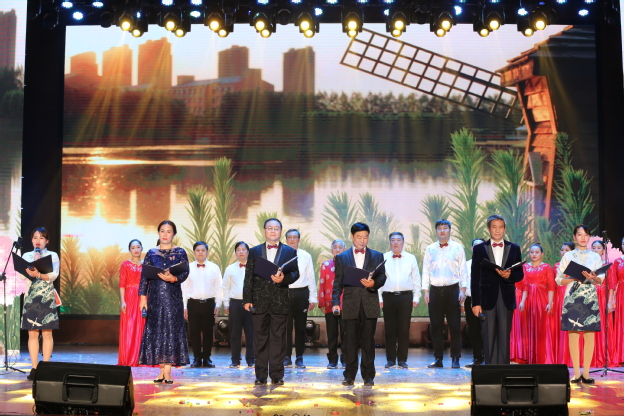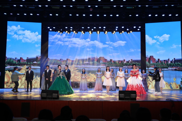 晚会在歌舞《不忘初心》中圆满结束,校领导与全体演职人员合影留念。