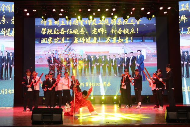 舞台剧《球乐尚武 金鼠迎春》中,老师们不仅用超炫的球技征服了观众,各种歌曲串烧也是可圈可点;合唱《时间都去哪儿了》用舒缓的旋律、贴心的歌词诉说着岁月流转中的种种故事;创意走秀《我与祖国共奋进》用一幕幕颇具时代特色的年轻人约会场景,以小见大地展示了祖国70年来翻天覆地的变化,令人回味;光影幕剧《嘿!我的全世界》用写实的手法再现了年轻教职工在三全的怀抱里不断成长与进步,形象展示了三全教职工对教育事业的执著和热爱;三句半《守初心 担使命》中,老师们一改往日严肃,挎着鼓,敲着锣,用幽默风趣的语言诉说着三全人如何守初心、担使命,赢得热烈掌声;舞蹈《古韵中华》柔美惊艳,舞者们在婉转的曲声中尽情展示着古风古韵,摄人心魄;节目《爱,因为在心中》通过精心编排的舞蹈场景,不仅展示了三全人相亲相爱的精神风貌,更通过送春联的特殊方式为广大教职工送上最真挚的新春祝福;一曲《我们都是追梦人》,唱出了广大教职工的心声,在三全这个大家庭中,他们挥洒汗水,回眸微笑,一起努力,争做春天的骄傲,成为了勇敢的追梦人。