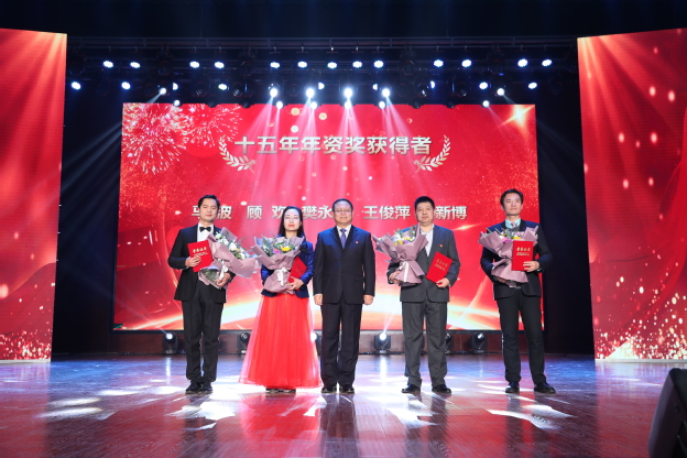 联欢会开始前,学校主要领导分别为5年、10年、15年年资奖获奖职工和文明家庭获得者颁发获奖证书,送上鲜花和祝贺。