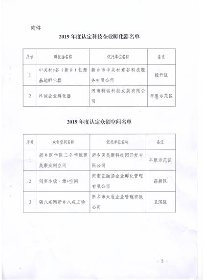 近日,新乡市科技局发布了《新乡市科技局关于认定2019年度市级孵化载体名单的通知》(新科[2019]89号),我校“新乡医学院三全学院医美康众创空间”成功获批为新乡市众创空间,是我校创新创业工作的突破。