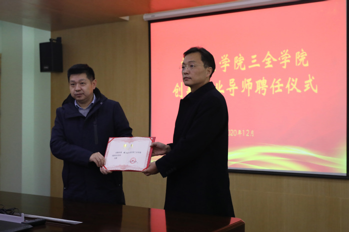为大力推进我校创新创业教育工作,培育专兼结合的就业创业导师队伍。我校也特聘请李斌为创新创业导师,顾欢为其颁发了聘任证书。聘任仪式结束后,在顾欢、马素娟等陪同下,李斌一行先后参观了我校图书馆、医工楼、智行书院和大学生众创空间。