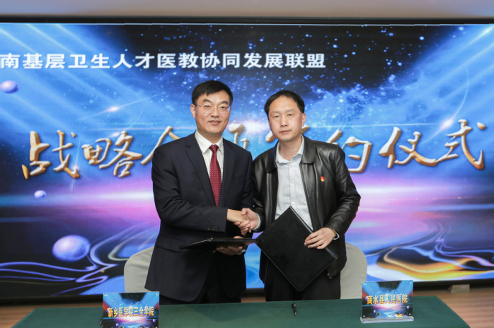 2019年12月,河南基层卫生人才医教协同发展联盟由我校牵头成立,一直致力于人才供给、科研合作、社会服务、继续教育等方面服务地方基层医疗事业发展。联盟积极搭建大平台,将高校优质资源与基层医疗单位实践相结合,以基层医疗人才需求为靶向,创新人才培养模式,扩大联盟影响力;深化高等医学教育供给侧结构性改革和创新发展,健全完善公共卫生服务体系,全力打造产学研用一体化平台,助力河南基层医疗卫生事业健康发展。