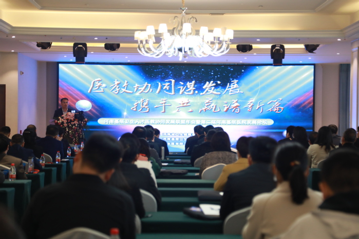 胡仕坤在致辞中表示,过去一年,联盟各兄弟单位同心战“疫”,构筑了守护人民健康的钢铁长城,在医教协同发展中取得了丰硕成果。当前省内医学院校设置数量及人才培养规模远远无法满足广大人民群众快速增长的健康需求,联盟必须紧跟时代风向标,积极谋划高质量发展新格局。他提出以下建议:一是持续健全基层医疗卫生人才培养体系。深化医学教育供给侧结构改革,开展“下得去、留得住、用得上”的全科医学人才培养,切实满足城乡基层医疗卫生服务的需求。二是在联盟内部形成强大的发展合力。各联盟成员开展全方位、深层次、多角度的紧密型合作,以集群发展的超级平台实现多方创新、超前发展。通过住院医师规范化培训等多种途径,将医院与学校优势相结合,铸就互联共赢。三是加大联盟服务地方经济社会发展的力度。联盟要主动承担社会责任,分担政府的基层医疗卫生压力,为河南人民的身体健康保驾护航,为功在当下、利在千秋的健康中国、健康中原大计不懈奋斗。